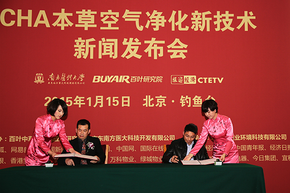 2015年元月15日,嚴冬的北京,霧霾彌漫,陣陣寒意,北京釣魚臺國賓館俱樂部陽光大廳里卻暖意濃濃,氣氛熱烈,下午三點,“CHA本草空氣凈化技術新聞發布會”在歡聲笑語中開幕。來自衛生、環保、工商、社保、金融、文化等多個部門的領導和全國各地空氣凈化行業的嘉賓,以及北京30多家媒體記者120余人齊聚一堂,共同見證CHA本草空氣凈化技術的誕生。